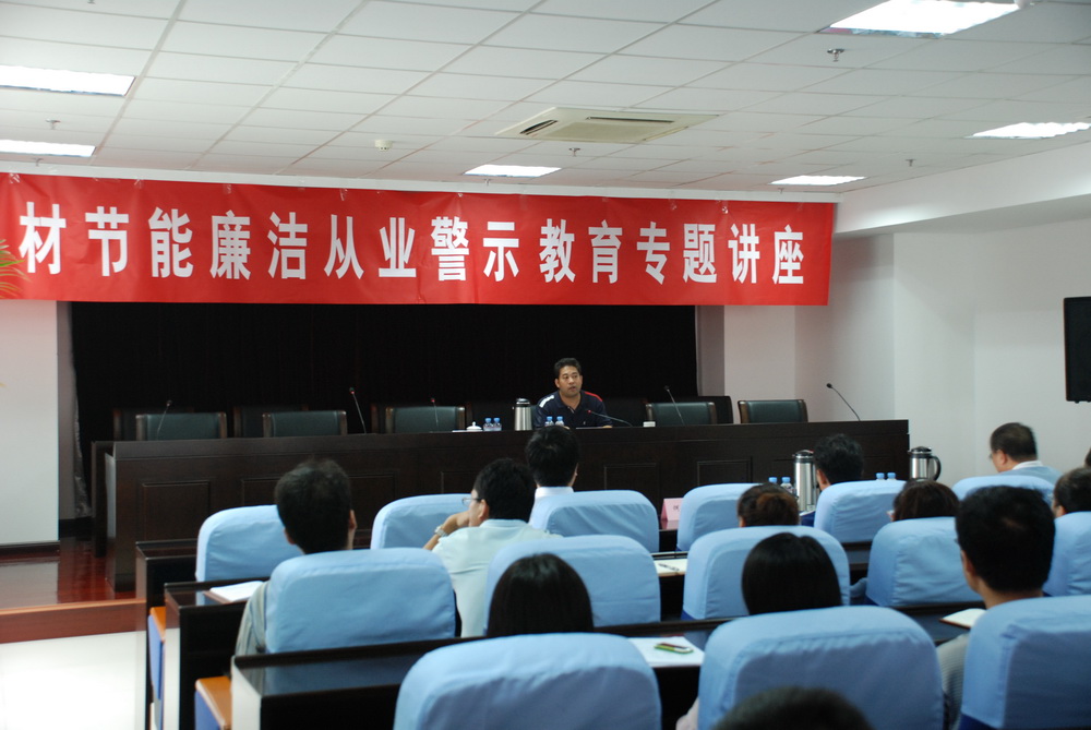 9月3日,中材節(jié)能舉辦廉潔從業(yè)警示教育專(zhuān)題講座,邀請(qǐng)全國(guó)十佳反貪局長(zhǎng)、天津市北辰區(qū)人民檢察院偵查監(jiān)督科科長(zhǎng)謝玉忠作專(zhuān)題講座。講座由公司黨委書(shū)記劉習(xí)德主持。公司總經(jīng)理何新平等在津經(jīng)營(yíng)班子成員、本部各職能部門(mén)負(fù)責(zé)人等干部職工共90余人聽(tīng)取了講座。