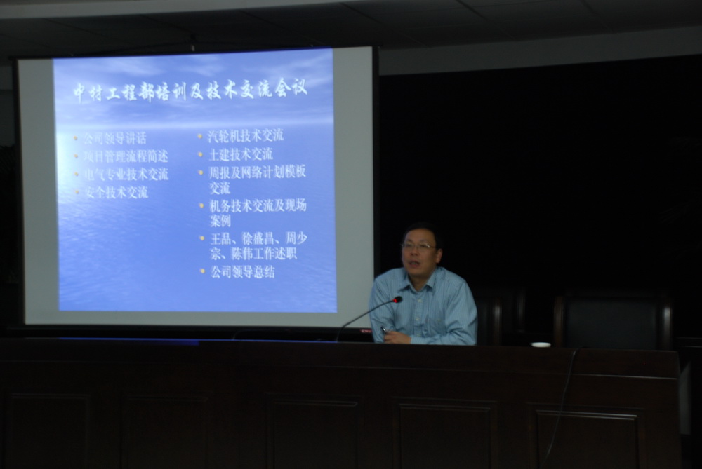 培訓和技術交流的內容包括七個子項專題:項目管理流程、安全管理、電氣安裝、汽輪發電機安裝、土建施工管理、機務安裝及現場施工案例、周報及網絡計劃模板。本次培訓以學習、交流、互動為主,與會人員聽講認真,交流積極熱烈。