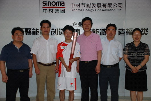 中材節能發展有限公司董事長張奇、總經理何新平、常務副總經理張富、副總經理葛立武、總會計師水偉等領導親切接見載譽歸來的林楠,勉勵他在今后的工作中,發揚“更快、更高、更強”的奧運精神, 為我國的節能減排事業做出更大的貢獻”,并與林楠一起合影留念。