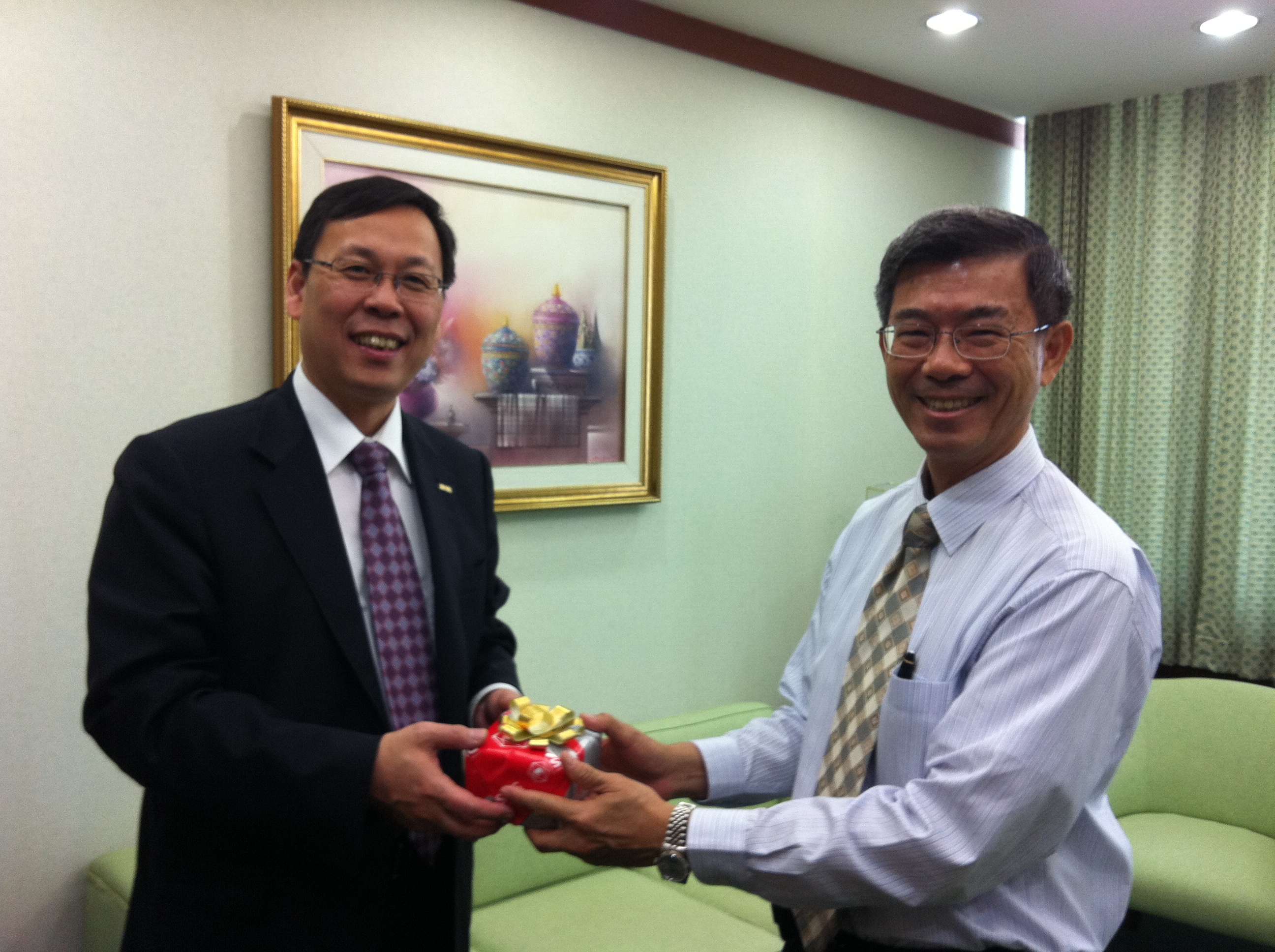 2012年4月24日,中材節(jié)能股份有限公司總裁胡也明一行到訪泰國SCG水泥集團總部,SCG水泥集團總裁Mr.Pramote先生、工程部部長Mr.Somkiat先生 、工程部副部長Mr.Sawai先生及余熱發(fā)電項目主管經(jīng)理 Mr.Surapon先生等相關(guān)管理人員參加了會見。