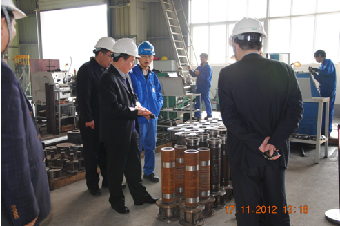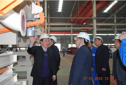 劉志江首先考察了武漢院裝備制造基地——中材節(jié)能(武漢)有限公司。在生產(chǎn)車(chē)間,劉志江詳細(xì)了解了機(jī)加工設(shè)備的配備以及外購(gòu)件、外購(gòu)設(shè)備的選用情況。在新落成的基地綜合樓,劉志江對(duì)員工辦公、生活條件的改善表示滿意。