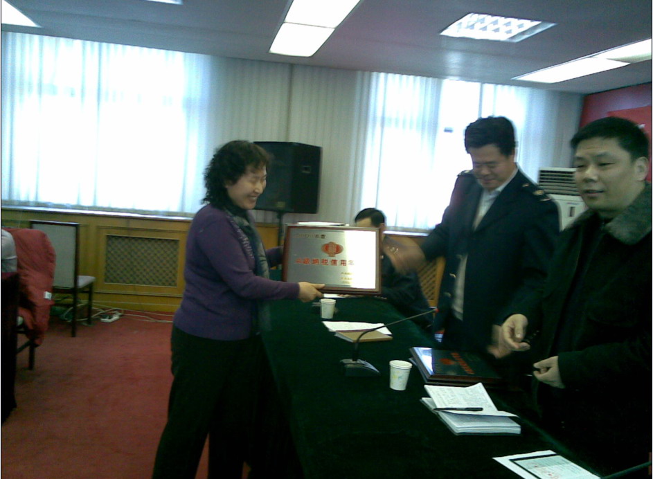 2009年1月14日,天津市北辰區(qū)A級(jí)納稅信用等級(jí)企業(yè)座談會(huì)在北辰區(qū)召開(kāi)。會(huì)上,中材節(jié)能總會(huì)計(jì)師水偉從國(guó)稅局、地稅局領(lǐng)導(dǎo)手中接過(guò)了“2008年度A級(jí)納稅信用等級(jí)”證書(shū)。