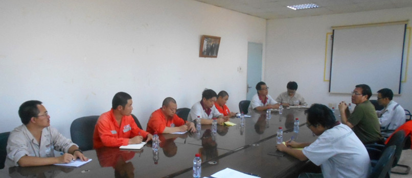 胡也明抵達沙特后,第一時間趕到沙特YCC項目部,在余熱發電事業部副總經理王品的陪同下了解現場施工進度、安全管理和員工的生活狀況。在對施工現場安全檢查過程中,胡也明向工人們詢問了空冷島的安裝過程,并對安全防護措施做了詳細檢查。在項目部專題會上,胡也明指出,現場要把安全放在第一位,要加大現場的安全監管力度,杜絕工人的違章違規行為,對發現的安全隱患要立即整改。期間,胡也明還參加了由YCC業主和分包方共同參加的項目協調會并講話。