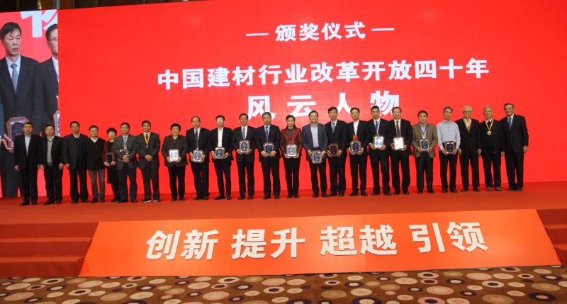在過去40年改革與發(fā)展歷程中,中國建材行業(yè)取得了豐碩的成果,涌現(xiàn)出一批優(yōu)秀的建材企業(yè)和領(lǐng)導(dǎo)者,為嘉獎(jiǎng)他們?yōu)樾袠I(yè)改革創(chuàng)新與持續(xù)發(fā)展作出的突出貢獻(xiàn),原國家建材局局長林漢雄、王燕謀、張人為,原國家建材副局長、中國建材聯(lián)合會(huì)會(huì)長喬龍德,原國家建材局副局長雷前治、蔣明麟被評(píng)為“中國建材行業(yè)改革開放四十年領(lǐng)袖人物”;中國建材集團(tuán)有限公司董事長、黨委書記宋志平,安徽海螺集團(tuán)有限責(zé)任公司原董事長郭文叁被評(píng)為“中國建材行業(yè)改革開放四十年影響力人物”。中國建材集團(tuán)有限公司副董事長李新華,中國建材集團(tuán)有限公司總工程師、中國建筑材料科學(xué)研究總院院長姚燕,中材節(jié)能股份有限公司董事長張奇等被評(píng)為“中國建材行業(yè)改革開放四十年風(fēng)云人物”。