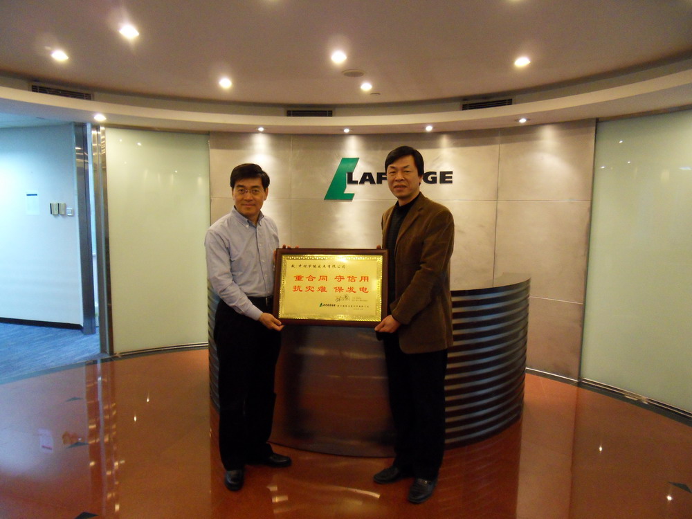 拉法基亞洲D(zhuǎn)EC總裁Pierre先生、四川區(qū)工業(yè)總監(jiān)李正洙先生,中材節(jié)能董事長張奇先生,主管投資副總經(jīng)理劉春燕女士,主管工程副總經(jīng)理魏文華先生參加了頒獎儀式。