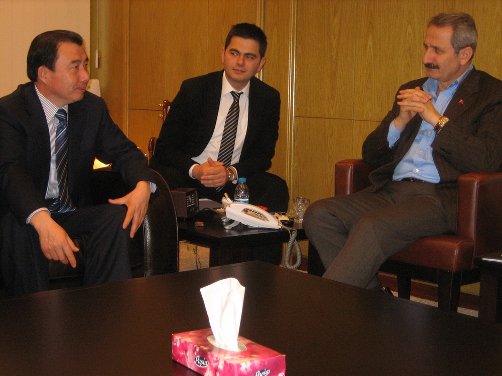 Turkey Minister of Foreign Trade Mr. Zafer extended a warm welcome to General Manager Liu Zhijiang and Chairman Zhang Qi’s visiting and expressed certainty on the rapid development of China and the positive influence of Chinese companies in the international market. He also emphatically introduced the development situation of foreign companies investing business in Turkey. He said that, except for preferential policy on tariff, before the end of 2010, Turkey also will provide more preferential treatment and conveniences to the companies that invest the industries such as wind energy, solar energy and new energy etc. He hoped Sinoma-EC can seize the opportunity, at the basis of sincerity, friendly and win-win, continually expand the cooperation in the field of wind energy, composite material and fiber glass etc. expect for waste heat recovery and make a contribution to promote the economic and trade cooperation between China and Turkey.
