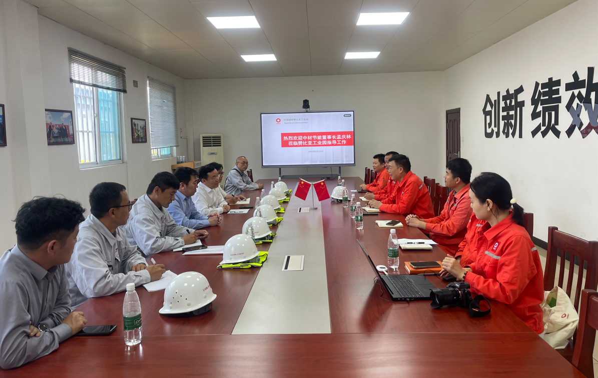 Meng Qinglin and his delegation visited the China National Building Material Zambia Industrial Park (hereinafter referred to as the "CNBM Zambia Industrial Park"). They inspected the Zero External Power Purchase Green and Low-Carbon Project undertaken by Sinoma Energy Conservation Ltd. within the park. Mr. Shao Mingzhu, Chairman and General Manager of the Zambia Industrial Park, extended a warm welcome to Meng Qinglin and his delegation.