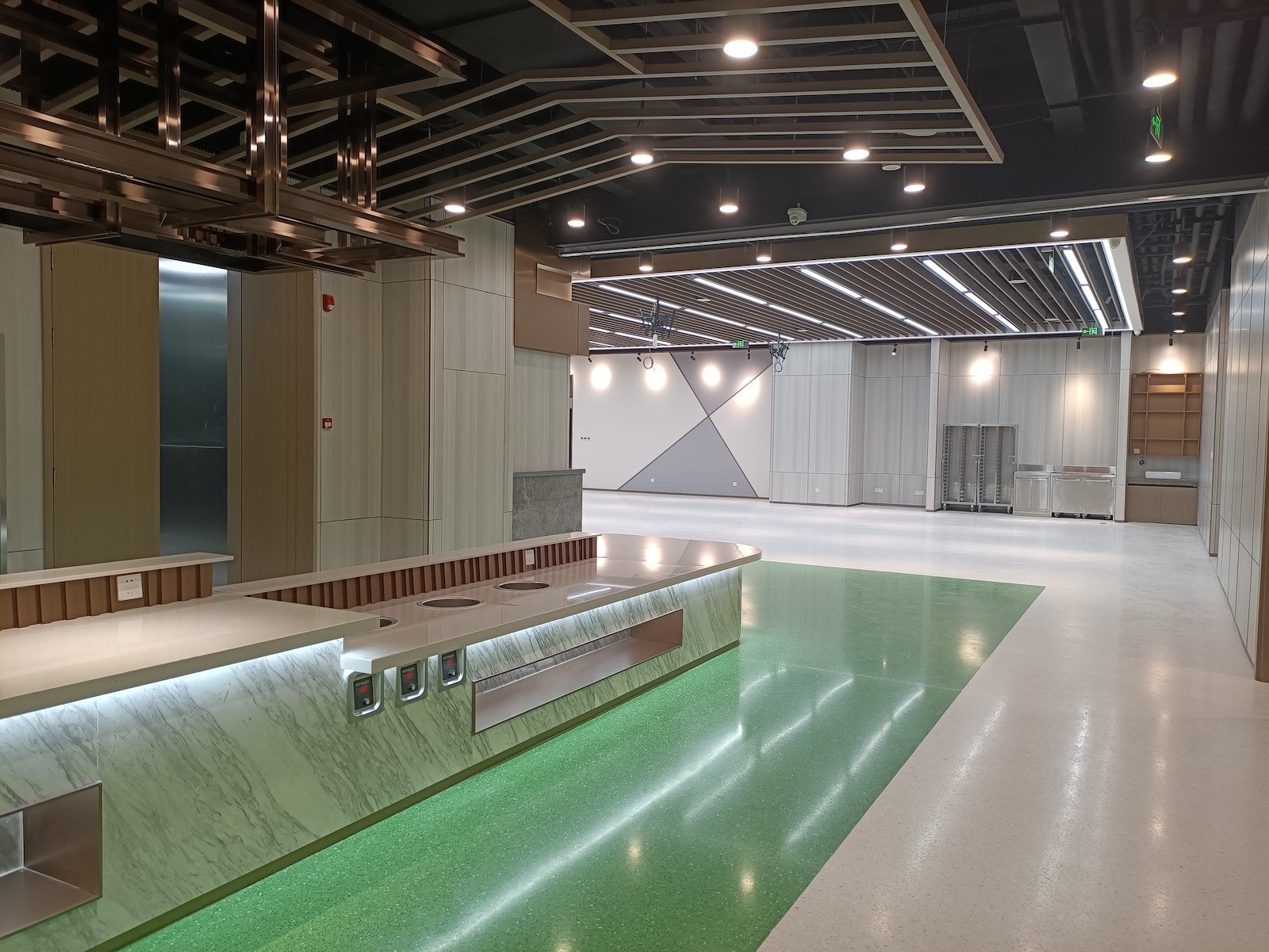 Sinoma Hankun? fire-resistant decorative panels are used as the interior wall decoration material for the staff cafeteria of China National Building Materials Federation. Sinoma Hankun? fire-resistant decorative panels are made of high-density non-asbestos calcium silicate board substrate with decorative surface layer and protective layer by professional equipment through high temperature and high pressure. It is a green building material product that combines fire resistance, environmental protection, easy cleaning and fast modular installation. With its superior characteristics, it is perfectly suitable for schools, hotels, office buildings and other architectural fields that have high requirements for fire prevention, environmental protection and fast installation.